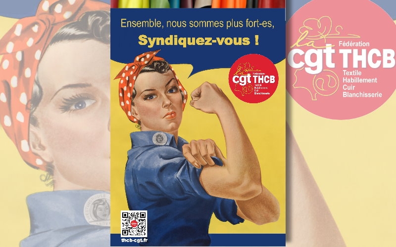 Inspirée de "Rosie la Riveteuse", l'affiche est imprimable en A4 ou A3. Lien de téléchargement: Rosie-THCB-CGT-Affiche-A3.pdfAfficher les fichiers PDF sur feuilleteur
