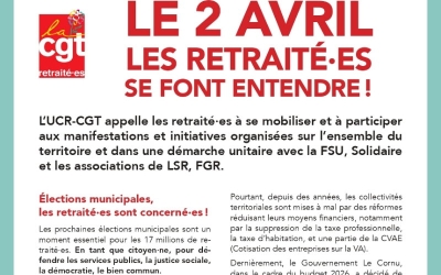 Le 2 avril les retraité-es se font entendre ! [Tract] L’UCR-CGT appelle les retraité·es à se mobiliser et à participer aux manifestations et initiatives organisées sur l’ensemble du territoire et dans une démarche unitaire avec la FSU, Solidaire et les associations de LSR, FGR le 2 avril 2026.
